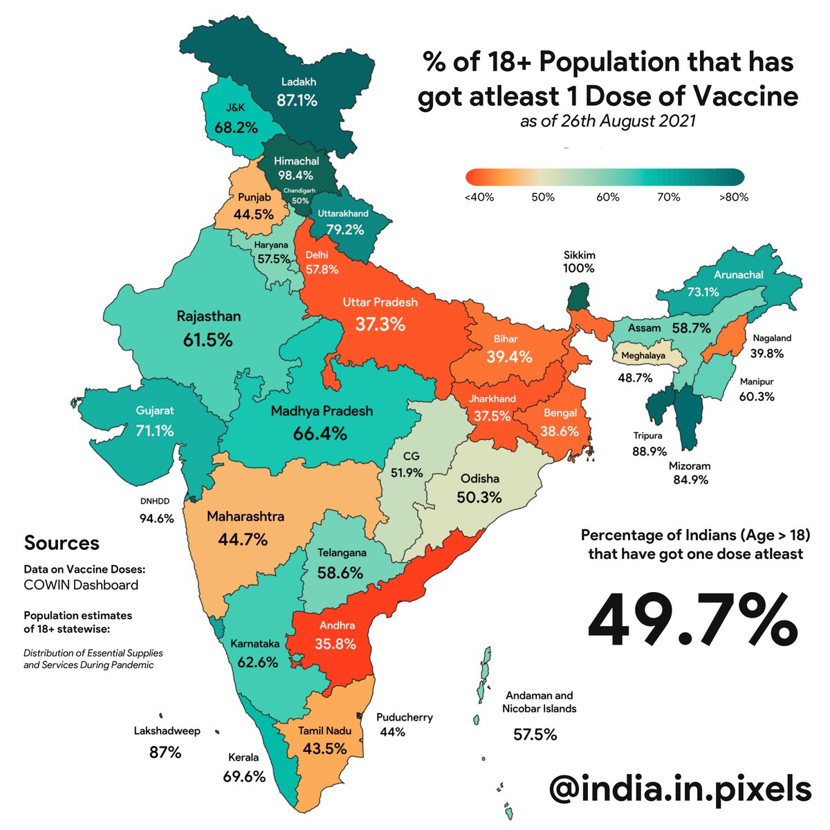 India In Pixels On Twitter About 50 Of Indians Above The Age Of 18 Have Received At Least One Dose Of The Covid 19 Vaccine For A Huge Country Like Ours This